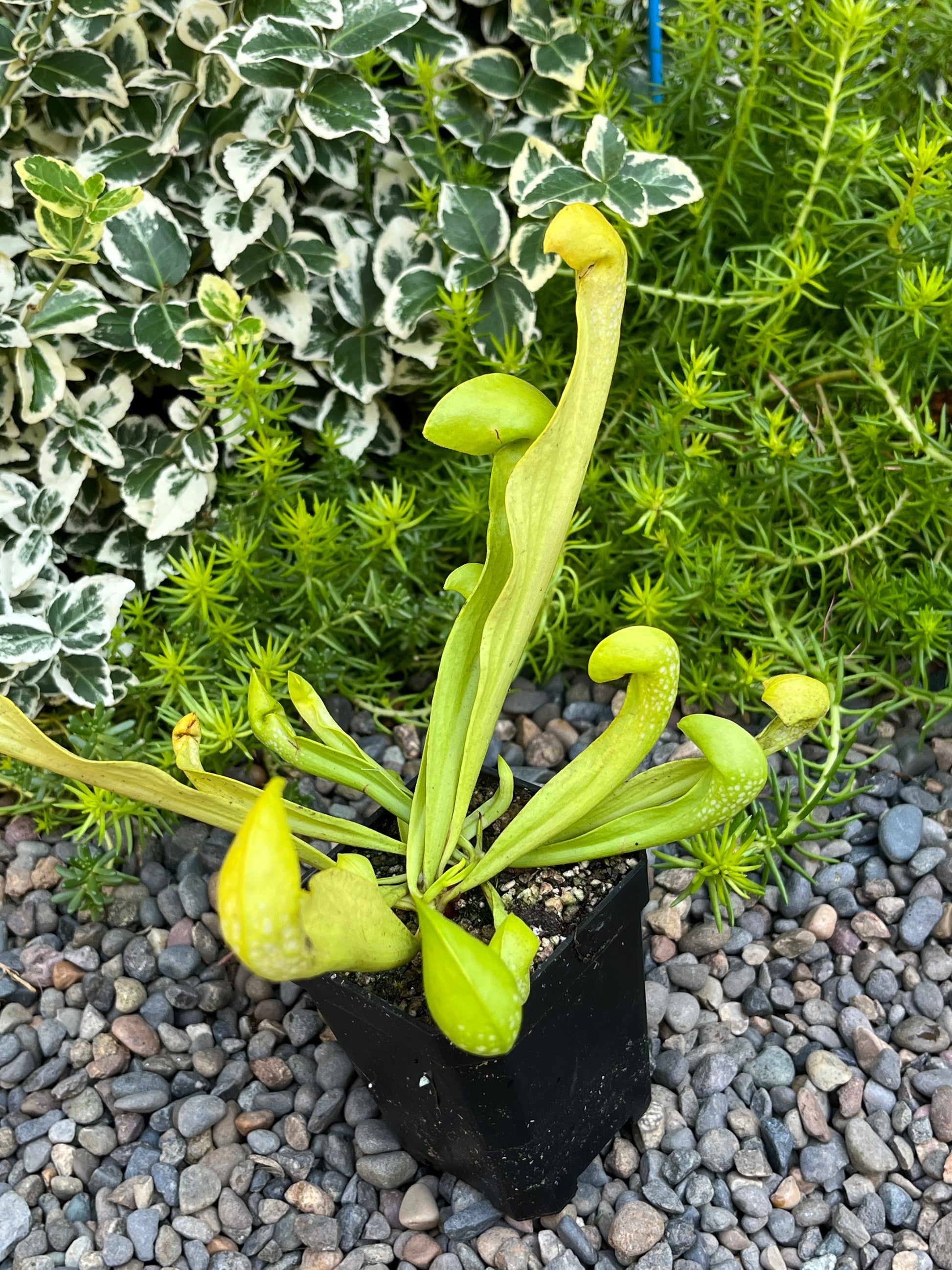 Plants are grown outdoors and will be experiencing dormancy between Oct-March. Sarracenia are shipped in a 3" pot with a house mix comprised of peat moss and perlite.